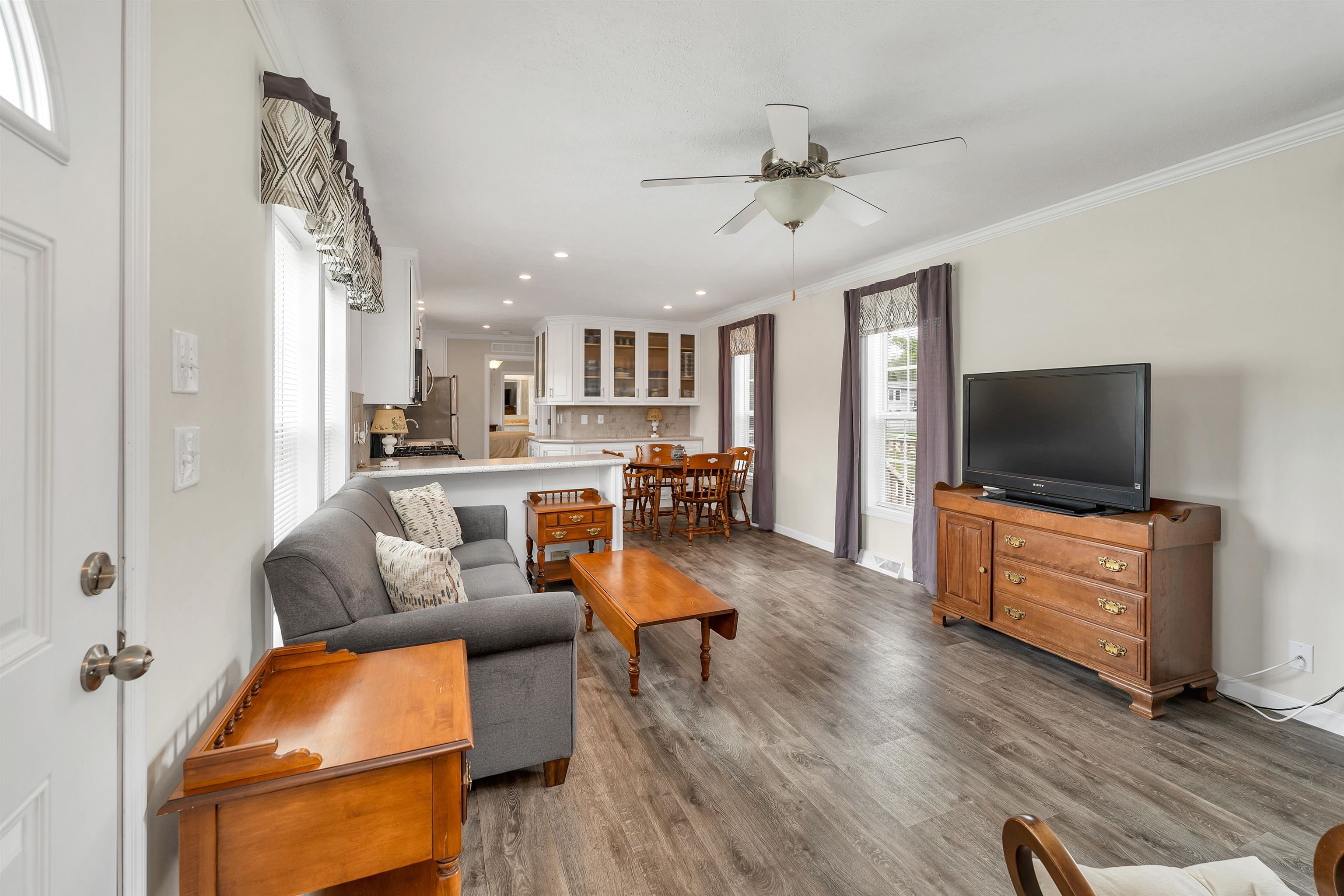 Welcome to your 2023 manufactured home located in Shel-Al Estates, one of the most well-established communities along the New Hampshire Seacoast! This home includes a brand-new 20x14 garage and a newly added handicap-accessible ramp, which can remain with the home or be removed to suit your needs. Inside, you'll find… Read More an open-concept layout with multiple high-end upgrades, including crown molding throughout and a stylish tile backsplash in the kitchen. Enjoy cooking in the spacious kitchen with abundant cabinetry, stainless steel appliances, a breakfast bar, and a dedicated dining area—all flooded with natural light. The home features two generously sized bedrooms. The primary suite boasts a large closet, a private bathroom with a double-sink vanity, and a walk-in shower. The second bedroom also offers ample space and a nice sized closet, with a full second bathroom nearby. Additional highlights include a private laundry room with washer and dryer already installed, central air conditioning, a paved driveway for two cars, landscaped yard, an outdoor deck perfect for relaxing or entertaining, and do not forget the garage. Shel-Al Estates offers a convenient lifestyle just minutes from Seacoast beaches, local shopping, restaurants, and services. With easy access to major highways, commuting to Portsmouth, Exeter, or Boston is a breeze. This home can also be purchased fully furnished—just move right in! Smile, you’ve just found your perfect home! Read Less
